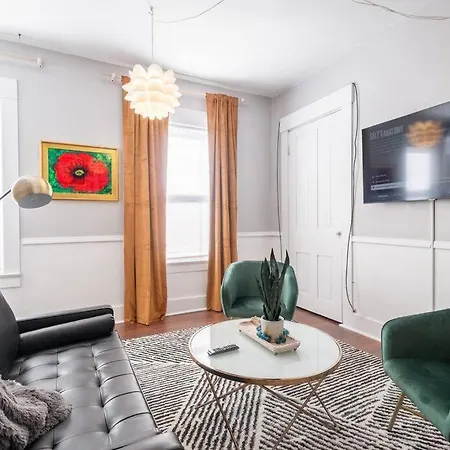 O apartamento Walkable Downtown Columbus Historic Home, Free Bikes To Use oferece cozinha totalmente equipada, bem como quartos com sofá, mesa de trabalho e máquinas de café/chá. Os hóspedes podem visitar a Recurso comum, bem como First Christian Church a 500 metros da propriedade.